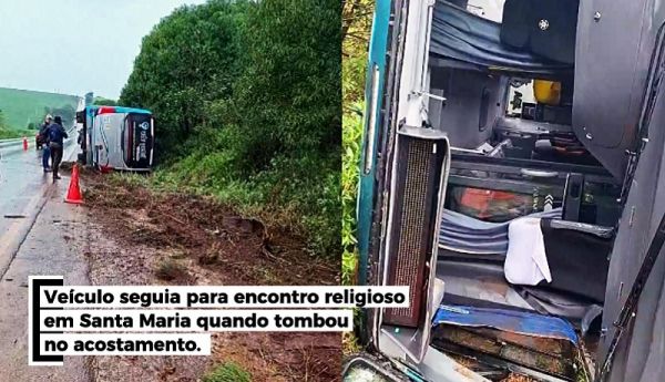 O veículo transportava 25 ocupantes em direção a Santa Maria para um encontro religioso. Conforme informações preliminares, cinco pessoas ficaram feridas. O motorista precisou ser encaminhado a Cruz Alta para avaliação médica, enquanto outros quatro passageiros tiveram lesões mais leves.