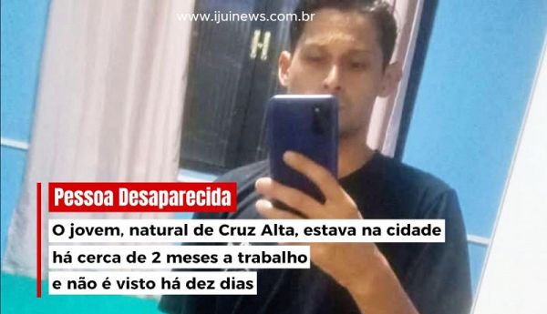 ✔✔ Uma família registrou ocorrência policial relatando o desaparecimento do filho e irmão, Wesley Adriano, de 24 anos, em Ijuí. O jovem, natural de Cruz Alta, estava na cidade há cerca de dois meses a trabalho e não é visto há dez dias.