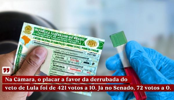 A obrigatoriedade do exame para todos os condutores veio após o Congresso Nacional derrubar um veto do presidente Lula na semana passada. Na Câmara, o placar a favor da derrubada do veto foi de 421 votos a 10. Já no Senado, de 72 votos a zero.