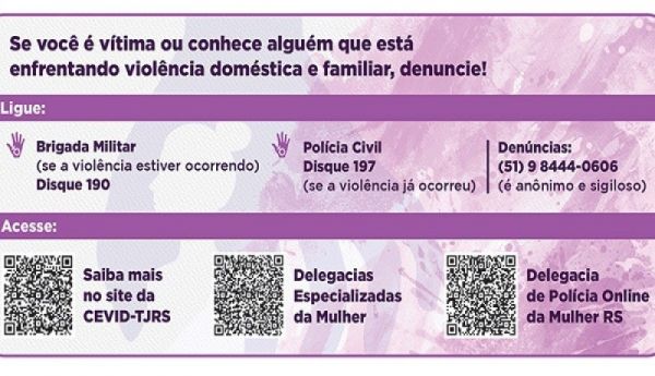 Interessados em aderir ao Projeto Sentinela podem procurar a Coordenadoria Estadual da Mulher em Situação de Violência Doméstica e Familiar (CEVID) do TJRS, por meio dos telefones (51) 3259-4527 / 7157 ou (51) 99540-7589, ou ainda pelo e-mail cgj-cmvdf@tjrs.jus.br.