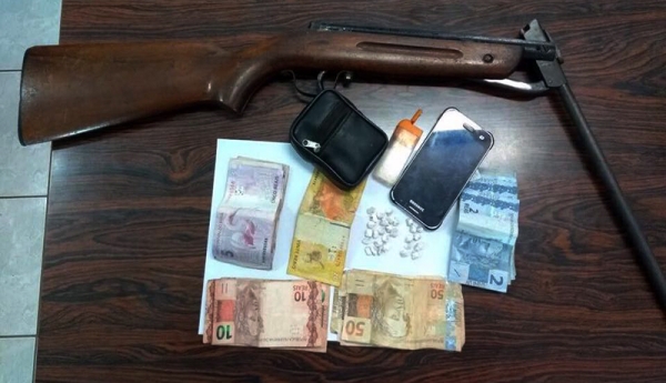 Na ação foram apreendidas 29 pedras de crack, dinheiro, celular e uma espingarda de pressão. “Diabão” foi recolhido à Penitenciária Modulada.