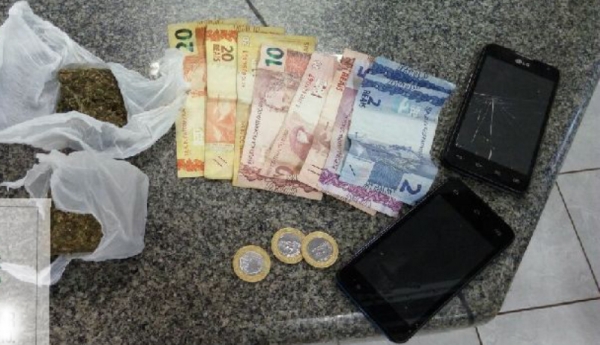Os dois foram detidos por PMs quando saíam do Condomínio Boa Vista portando 69 gramas de maconha, R$ 102 em dinheiro trocado e celulares.