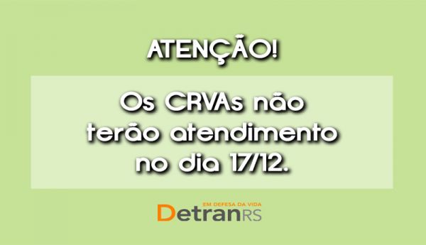 Em preparação para as placas padrão Mercosul, o DetranRS suspende os serviços de registro de veículos e correlatos neste dia 17 de dezembro. Somente na segunda-feira não haverá atendimento nos CRVAs (Centros de Registro de Veículos Automotores). Na terça-feira (18), o atendimento será normal, já com as novas placas sendo colocadas.
