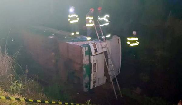 Um ônibus tombou em um barranco às margens da estrada que liga os municípios de Entre-Ijuís e Eugênio de Castro, na noite dessa terça-feira (18). O coletivo lotado transportava professores, familiares e crianças alunas da Escola Estadual de Educação Básica Theodorico Alves Teixeira, de Eugênio de Castro.