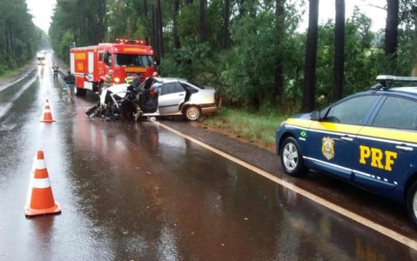 Por volta das 17h30, na linha Maranei, o carro, um Fiat/Tempra emplacado em Ijuí, saiu da pista e bateu em árvores às margens da rodovia.
