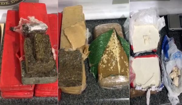- 7 kg de maconha, 1 kg de cocaína e 1 kg de crack, mais balança de precisão e celulares.