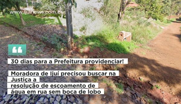 O Juizado Especial da Fazenda Pública da Comarca de Ijuí concedeu liminar a uma moradora das margens da Rua Leoni Silvello, no bairro Tiaraju, quase esquina com a Rua Mariano de Mattos, que está com a servidão de passagem prejudicada pela água da chuva que escoa em via pública sem boca de lobo e acaba obstruindo a passagem.
