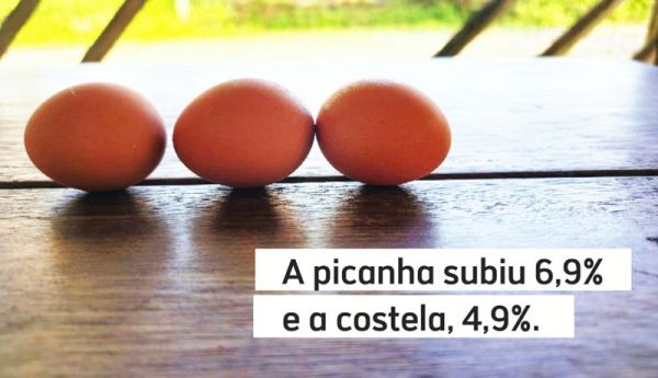 Algumas das carnes mais consumidas no churrasco tiveram reajustes ainda mais significativos: a picanha subiu 6,9% e a costela, 4,9%. A valorização da carne impacta diretamente o consumo, levando muitos a buscarem alternativas mais acessíveis. A alta no preço dos ovos está relacionada ao aumento no da carne.