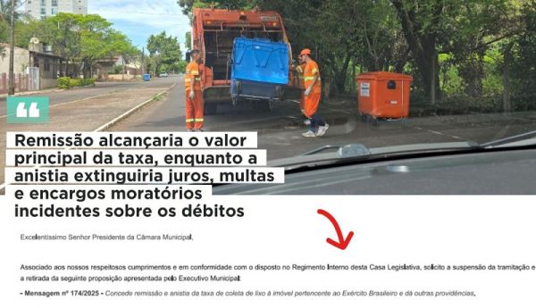 A proposta foi retirada antes mesmo de ser analisada pelas comissões permanentes do Legislativo. O projeto previa o perdão integral dos débitos lançados entre os anos de 2020 e 2024.