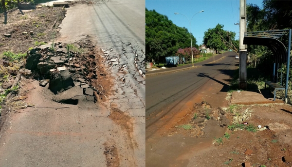 Buracos em frente a parada de ônibus prejudicam motoristas e passageiros em Ijuí