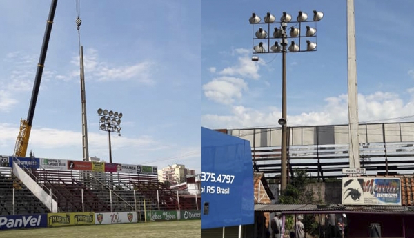 A direção do Esporte Clube São Luiz acompanhou neste domingo (19) o início das obras da nova iluminação do Estádio 19 de Outubro.
