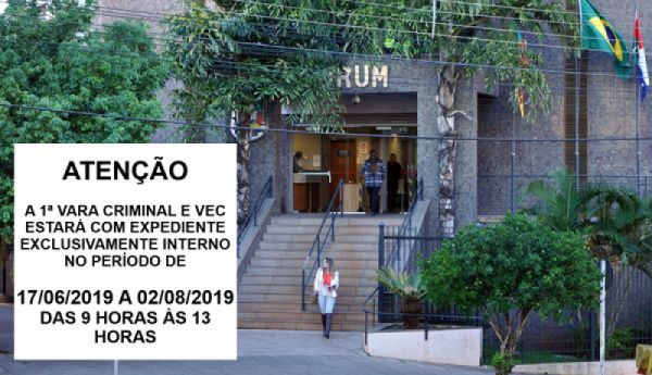 A 1ª Vara Criminal e a Vara de Execuções Criminais da Comarca de Ijuí estão com expediente exclusivamente interno, desde essa segunda-feira (17), das 9h às 13h, sem qualquer prejuízo às medidas urgentes e às audiências designadas.