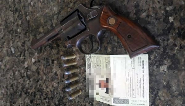 Segundo a BM, o detido negou ameaças e franqueou a entrada dos agentes em sua residência. Nas buscas, um revólver calibre 38, carregado, foi localizado dentro do lixo do banheiro.
