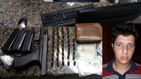Cleiton Luiz Fontoura estava com CNH falsa, em nome de Paulo Roberto. Dentro do Citroën foram encontrados uma pistola carregada, e dois carregadores extras (42 munições), cerca de 50g de cocaína e R$ 344 em dinheiro.