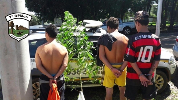 Nessa segunda-feira (6), policiais militares de Santo Ângelo prenderam três jovens e apreenderam dois adolescentes por cultivo de maconha.