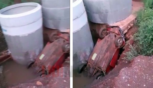 Um automóvel Fusca caiu em uma obra da Corsan (Estação de Bombeamento de Esgoto) no fim da Rua Augusto A. Rolim, no bairro Morada do Sol, no início da noite desta quarta-feira (15/2).