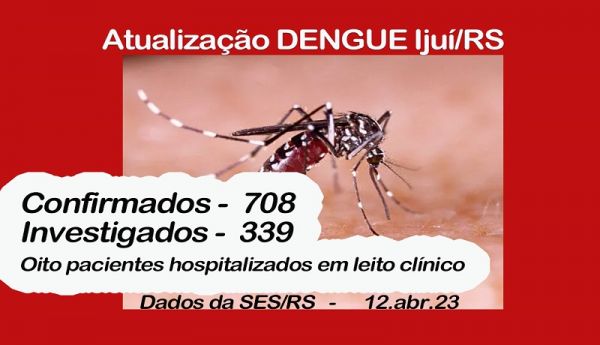A Secretaria Estadual da Saúde (SES-RS), por meio do Painel de Casos de Dengue, confirma 708 casos positivos da doença em Ijuí; 339 estão em investigação.