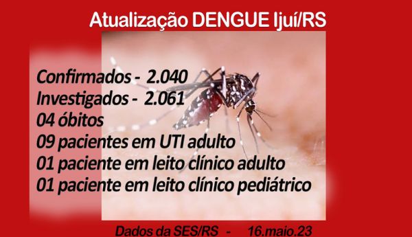 A Secretaria Estadual da Saúde (SES-RS), por meio do Painel de Casos de Dengue, confirma 2.040 casos positivos da doença em Ijuí; 2.061 estão em investigação.