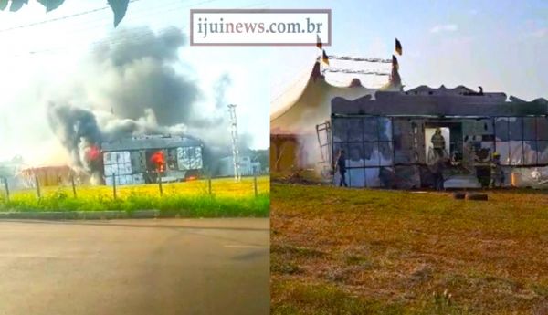 Um incêndio destruiu o compartimento da bilheteria e acesso principal do Circo Vitória, na tarde deste domingo (24/9), em Augusto Pestana.