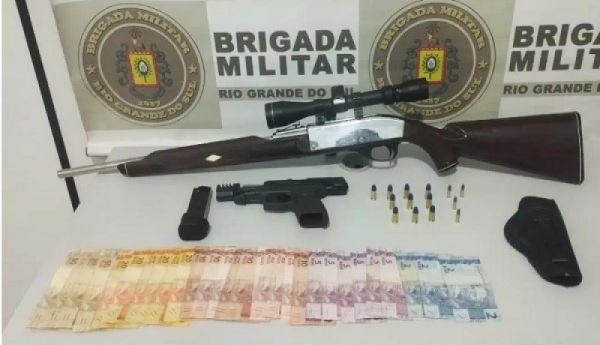 Segundo nota da BM, elas eram ocupantes de um veículo em que transportavam uma espingarda calibre 22 e munição, uma pistola 9mm e munição, uma luneta e R$ 465.