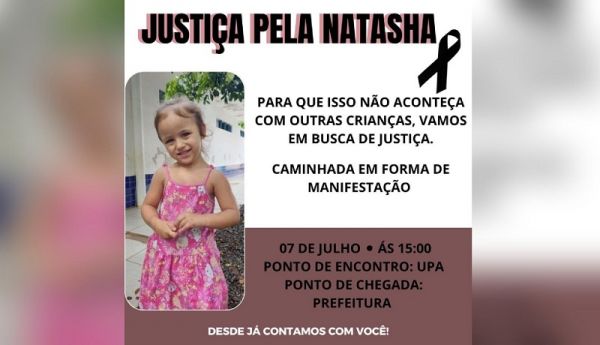 Com o pedido de “Justiça pela Natasha”, a família e amigos organizam uma caminhada de protesto para o domingo, dia 7 de julho, a partir das 15h, com concentração inicial em frente da UPA. Os manifestantes se deslocarão de lá até a Praça da República para ato em frente da Prefeitura.