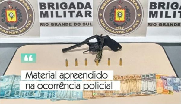 Ele foi capturado por PMs em abordagem no bairro Lulu Ilgenfritz, quando, segundo a Brigada Militar, tentou se livrar de um invólucro contendo uma arma de fogo (revólver calibre 38) e dinheiro (em notas de real).