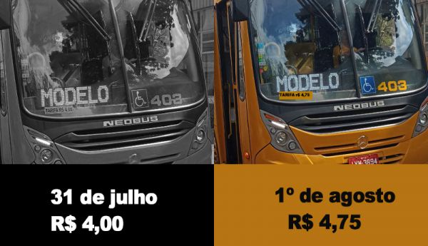 De acordo com o decreto nº 8.364, a partir de hoje, terça-feira - dia 1º de agosto, a passagem para o ônibus convencional custa R$ 4,50 no cartão, R$ 4,75 em dinheiro e R$ 2,25 para estudante.